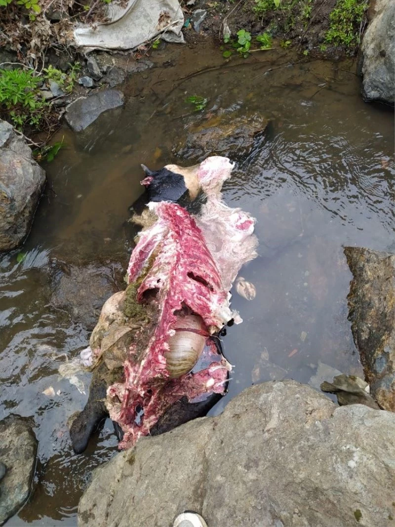 Samsun’un 19 Mayıs ilçesinde kurtlar merada otlayan danayı parçalayıp yedi. Danadan geriye kafası ve iskeleti kaldı.