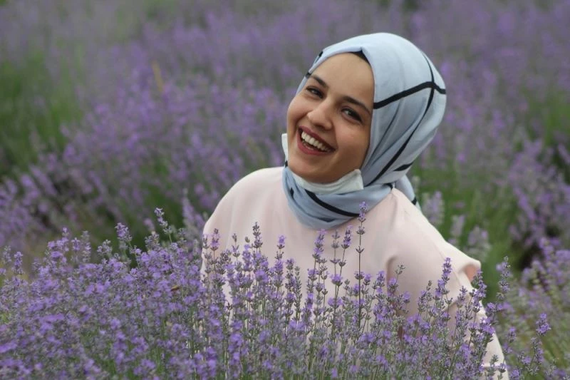 Lavanta tarlasına fotoğraf çekilmek için geldiğini söyleyen Berna Babacan, lavanta tarlasının mor cümbüşle hem göze hem de ruha hitap ettiğini ve kokusu ile mutluluk verdiğini belirtti.