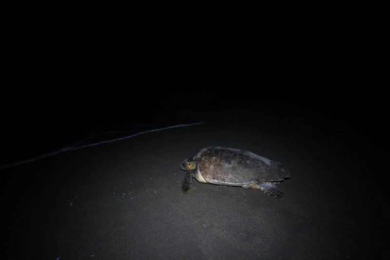 Kaplumbağalar, kazdıkları kumsala yumurtalarını bıraktıktan sonra tekrar denize dönüyor.
