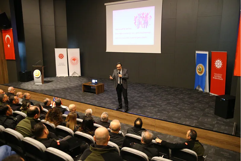 Konuşmaların ardından Çukurova Üniversitesi Eğitim Fakültesi Öğretim Üyesi Prof. Dr. Oğuzhan Kırdök, katılımcılara etkili iletişim ve liderlik konusunda sunum yaptı.