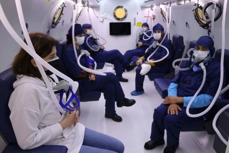 Hastaların çelik bir kabin içinde, deniz seviyesinde atmosferik basınçtan daha fazla bir basınca maruz bırakılarak yüzde 100 oksijen solumasına dayanan hiperbarik oksijen tedavisi, kentin yanı sıra çevre illerden gelen hastalara da şifa dağıtıyor.