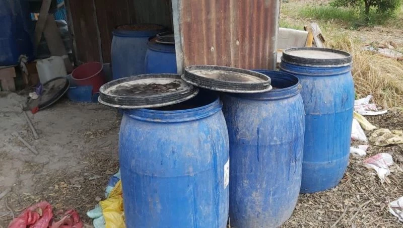 Il Emniyet Müdürlügü Kaçakçilik ve Organize Suçlarla Mücadele Subesi ekipleri, merkez Seyhan ilçesi Hadirli Mahallesi'nde bir narenciye bahçesindeki barakada sahte içki üretildigini belirledi.