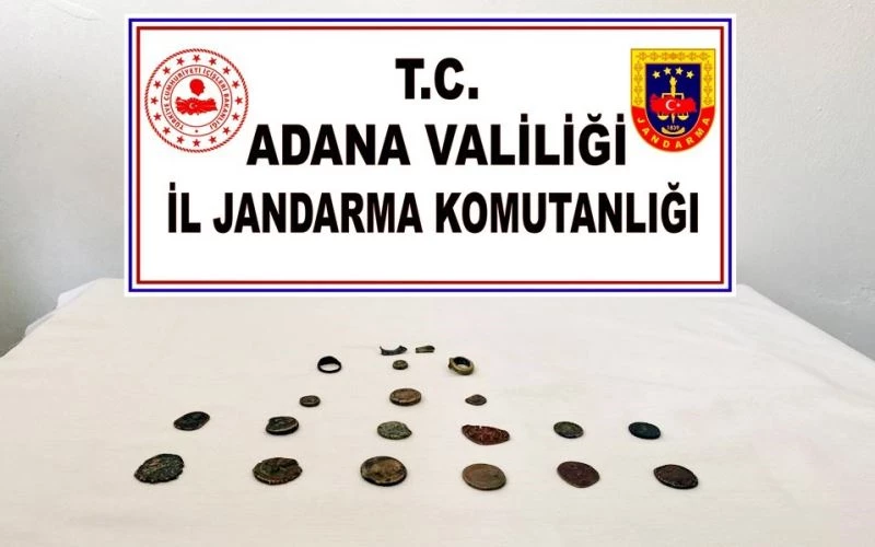Alınan bilgiye göre, İl Jandarma Komutanlığı ekiplerince, merkez Seyhan ilçesinde M.R.S. isimli şahsın yapılan üst aramasında 17 adet sikke olduğu değerlendirilen tarihi para, 2 adet yüzük parçası olduğu değerlendirilen obje, 1 adet sarı renkli üzerinde haç işareti bulunan küpe olduğu değerlendirilen obje olmak üzere toplamda 20 adet tarihi obje ele geçirildi.