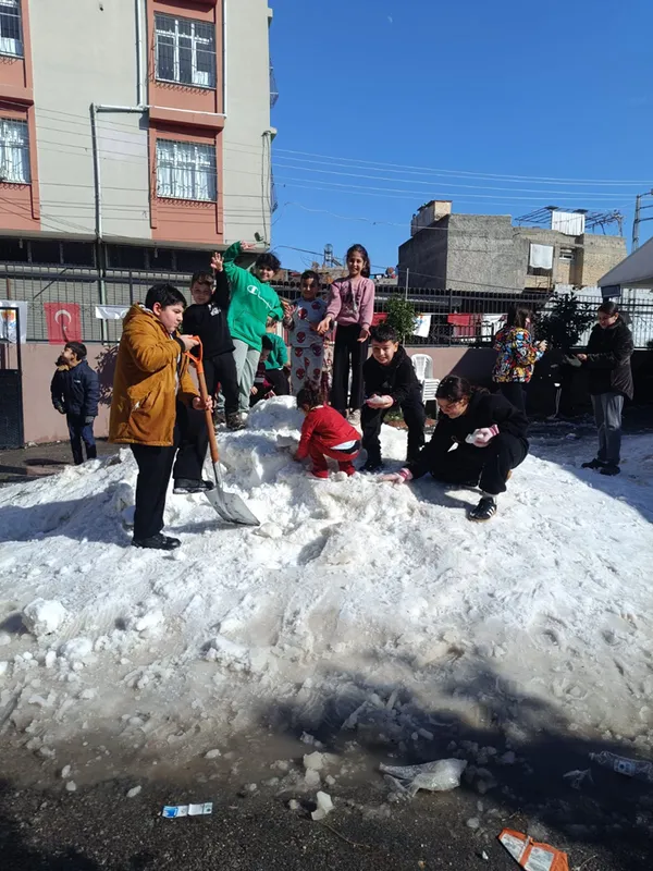 ADANA - Adana'nın merkez Seyhan ilçesinde çocuklar, kamyonlarla getirilen karla eğlendi.