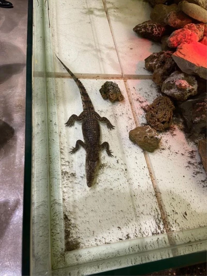 Ekipler, evde yaptıkları aramada özel bir bölmede bulunan ve ülkeye yasa dışı yollarla sokulduğu belirlenen timsaha el koydu.