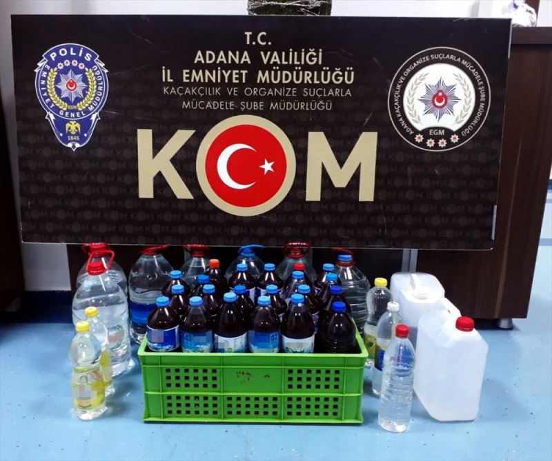 Il Emniyet Müdürlügü Kaçakçilik ve Organize Suçlarla Mücadele Subesi Kaçakçilik Suçlari Büro Amirligi ekipleri, merkez Yüregir ilçesi Haydaroglu Mahallesi'ndeki bir evde sahte içki üretildigini belirledi.