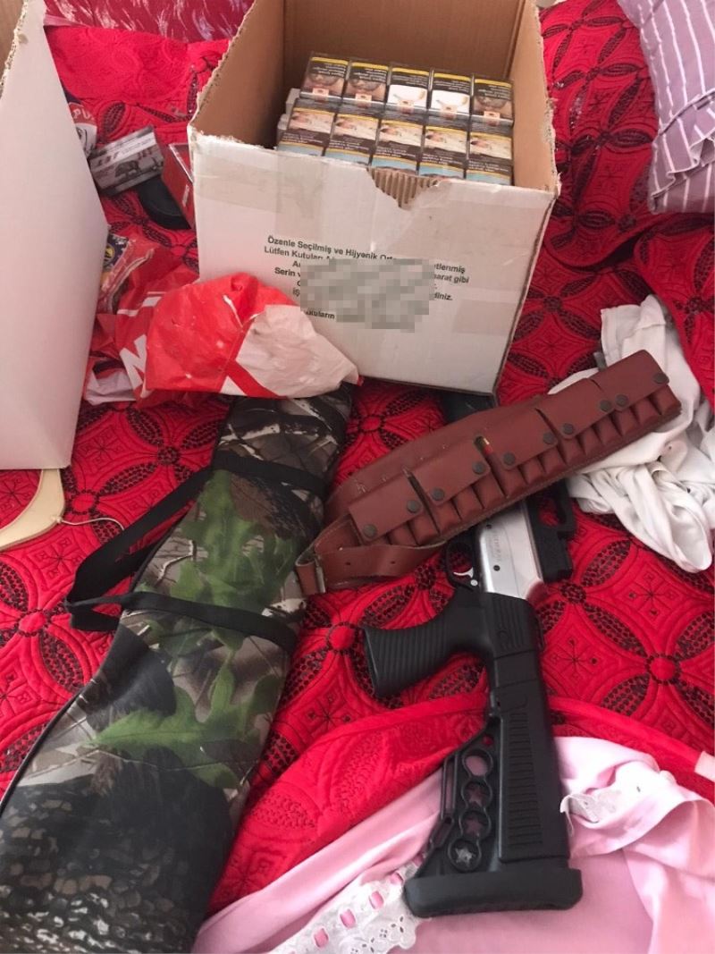 Adana’da sigara kaçakçılığı operasyonunda 1 tabanca, 2 av tüfeği ve kelepçe ele geçirildi.