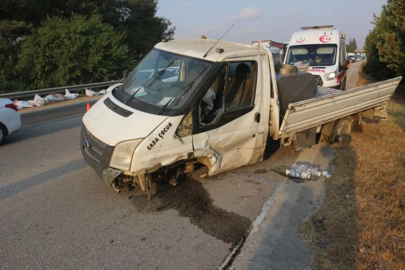 Merkez Sariçam ilçesi otobanda kus yemi yüklü Mehmet Ali Altinbas'in kullandigi 01 R 8103 plakali kamyonet, sürücüsünün direksiyon hakimiyetini kaybetmesi sonucu devrildi.