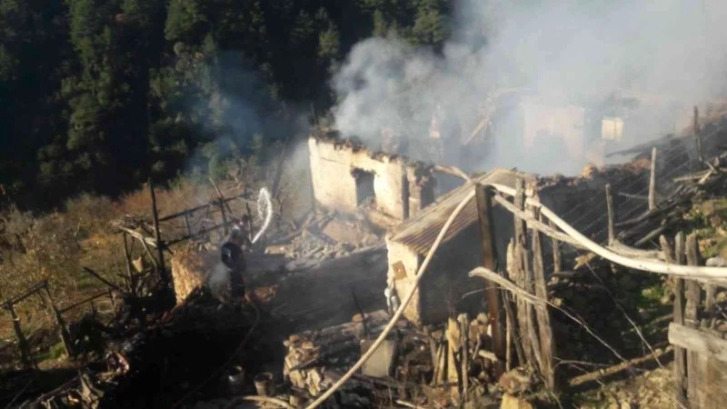 Adana’nın Kozan ilçesinde çıkan yangında kerpiç ev küle döndü.
