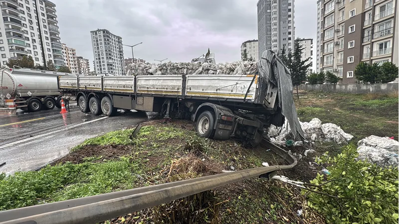 Adana’da kontrolden çıkan tır şarampole devrildi