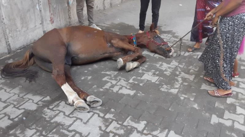 ADANA (AA) - Adana'da seyyar araba çeken at, sicak hava ve yorgunluk nedeniyle bayildi.