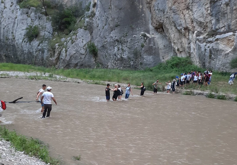 Kapıkaya Kanyonu'na gezmeye giden ve aralarında çocukların da bulunduğu bir grup, bölgede gezdikleri sırada Çakıt Çayı'nın su seviyesinin yükselmesi nedeniyle mahsur kaldı.