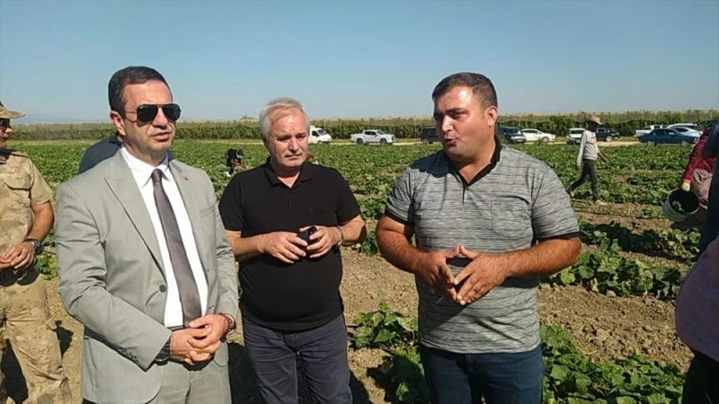 Kaymakam Şafak Gürçam ve Belediye başkanı Kazım Özgan'ın katıldığı kornişon toplama etkinliğinde ürün hakkında bilgi veren, Çokak Mahallesi muhtarı Yunus Erkmen geçen yıl ekimine başladığı turşuluk ve sofralık kornişon bu sene toplamda 150 dönümlük alana ektiğini söyledi.