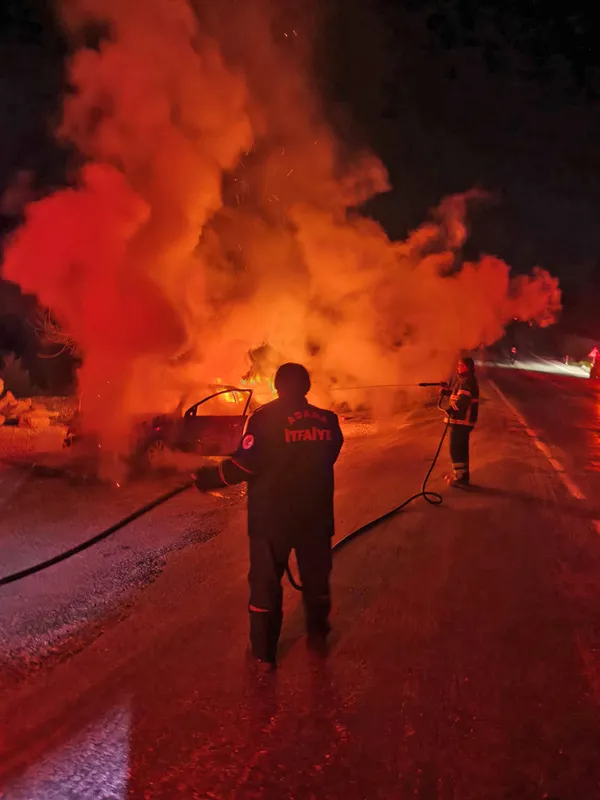 Ekiplerin müdahalesiyle söndürülen yangında, araç kullanılamaz hale geldi.