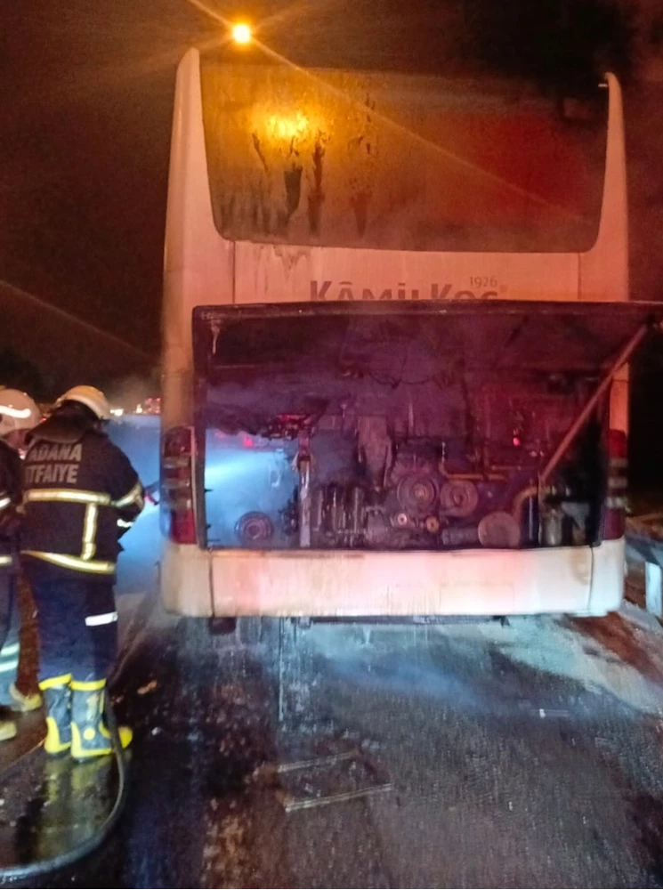 ADANA - Adana'nın Pozantı ilçesinde seyir halindeki yolcu otobüsünde çıkan yangın itfaiye ekiplerince söndürüldü.