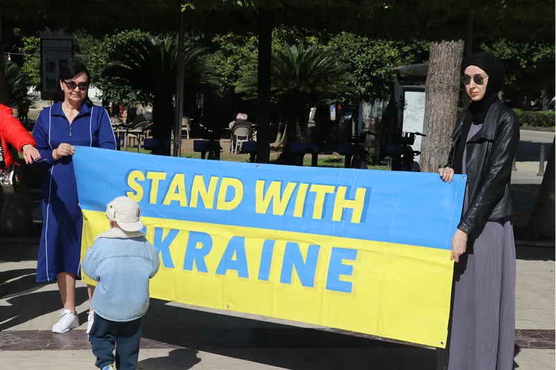 Adana-Ukrayna Dostluk Kültür Eğitim Yardımlaşma ve Dayanışma Derneği tarafından Ukrayna-Rusya savaşının 4. yıl dönümü dolayısıyla Atatürk Parkı'nda etkinlik düzenlendi.