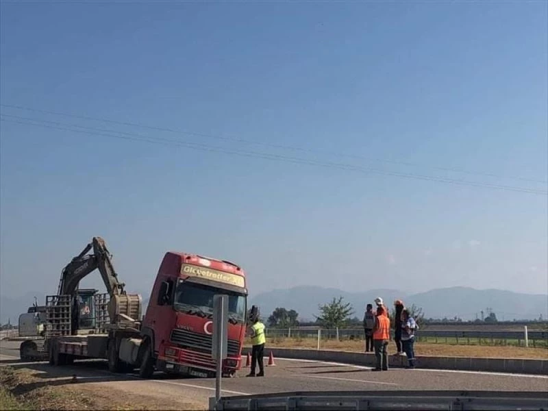 ADANA - Adana'da kara yolunda meydana gelen göçüğe düşen tır, trafiği aksattı.