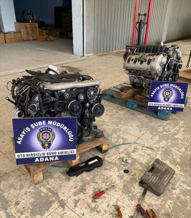 İl Emniyet Müdürlüğü Asayiş Şubesi Oto Hırsızlık Büro Amirliği ekipleri, yaptıkları araştırmayla farklı ülkelerde çalınan çok sayıda lüks otomobile ait motorların Adana'daki bir oto tamirhanesinde bulunduğunu belirledi.