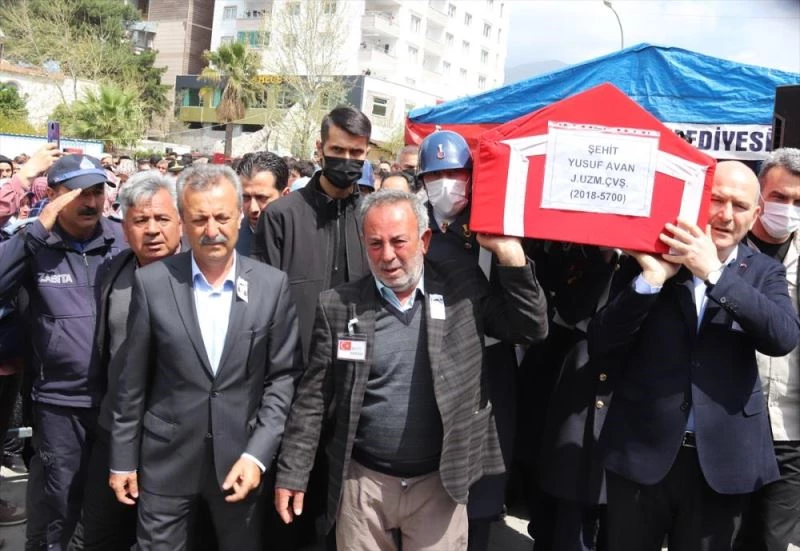 İl Müftüsü Ali Çakmak'ın kıldırdığı cenaze namazının ardından Bakan Soylu, şehidin babası ve askerlerle tabutu omuzlayarak cenaze nakil aracına kadar taşıdı.