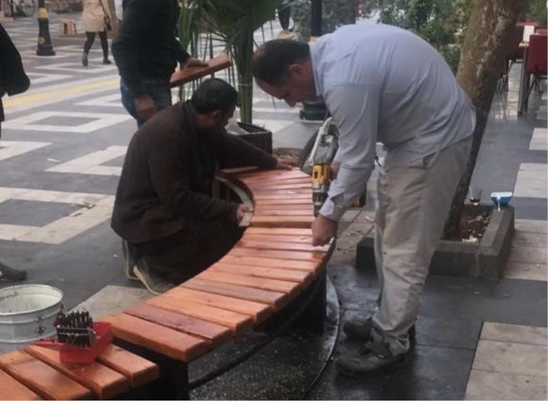 Adıyaman Belediyesi tarafından şehir merkezindeki oturma banklarında bakım ve onarım çalışması yapılıyor.