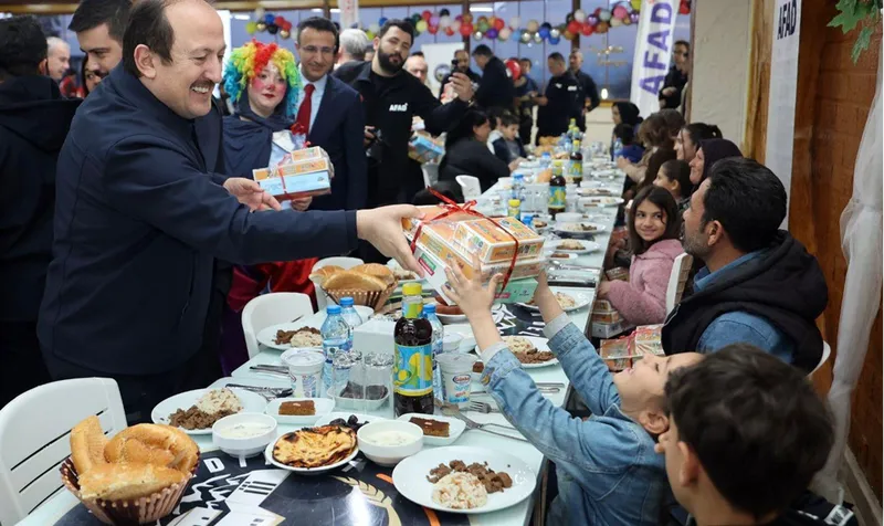 Masaları dolaşarak çocuklar ve aileleriyle ilgilenen Pehlivan, çocuklara hediyeler takdim ederek, ramazanlarını tebrik etti.