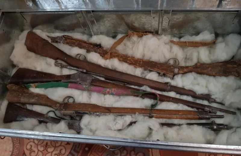 Afganistan’ın Kandahar kentinde bulunan bir evde 150 yıllık tüfekler bulundu. Müze yetkilileri, bir evde İngiliz bulunan askerine ait olduğu ifade edilen tüfeklerin Afganistan’ın 2. Emiri Emir Shir Ali Khan dönemine ait olduğunu ifade ediyor.