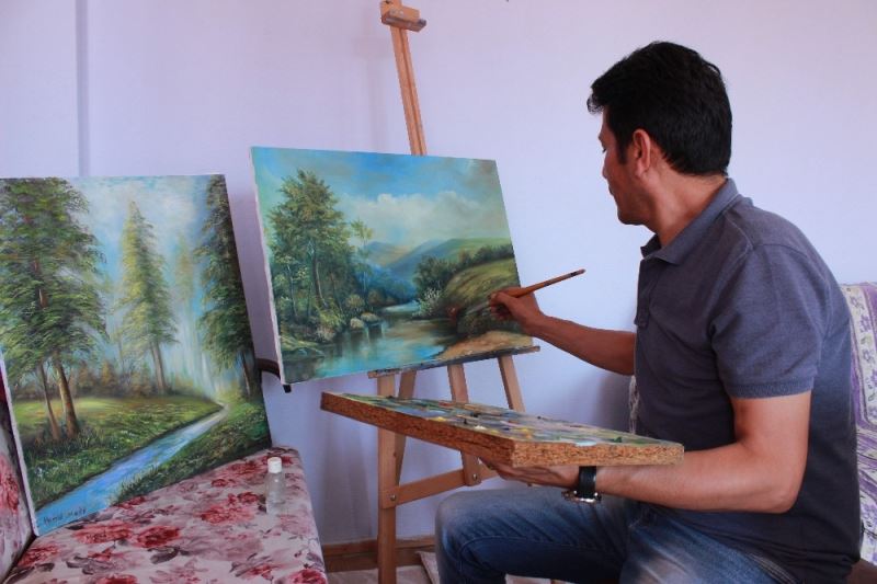 “Gurbet derdini bizim gibi sanatçılar daha çok hissederler. Bazen çok garip kalıyorum, üzülüyorum kimse bana ve sanatıma değer vermediğini gördüğümde çok üzülürüm. Ama yine de yolumu devam ediyorum. Bildiğimi mülteci çocuklara aktarıyorum. İranlı ve Afganistanlı öğrencilerim var. Bazıları mezun oldular, farklı ülkelere gittiler ve bazıları buradalar. Bazen de insanlar geliyorlar bir resim bir çizim isterler onları yapıyorum ve böylece hayat geçiriyorum.”
