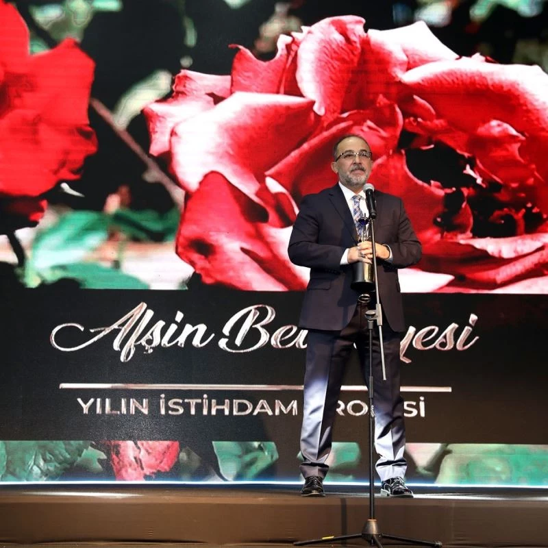 Sunuculuğunu Burcu Esmersoy ve Ceyhun Yılmaz’ın yaptığı Uluslararası Kristal Elmas Ödül Töreni’nde “Yılın İstihdam Projesi Ödülü”nü kazanan Afşin Belediyesi adına ödülü Başkan Mehmet Fatih Güven aldı.
