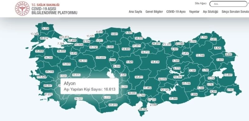 Afyonkarahisar’da Covit-19 aşısı yapılan kişi sayısı 16 bin 613’u ulaştı