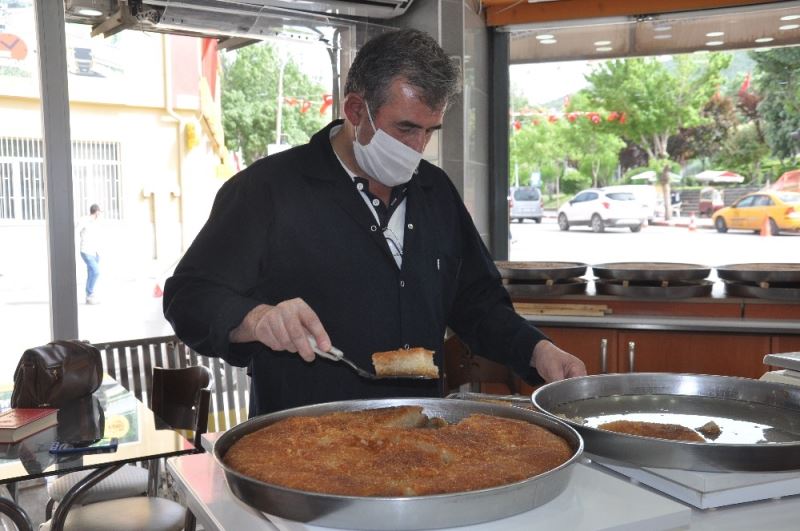 Manda kaymaklı ekmek kadayıfı Ramazan boyunca olduğu gibi bayramda da en çok tercih edilen tatlılardan biri. Ancak bu yıl Covid-19 tedbirleri kapsamında bayramda tüm yurtta sokağa çıkma yasağı uygulanacak olması talebi bir nebze azaltmış durumda. Buna rağmen gerek Afyonkarahisar genelinde gerekse çevre illerden bayramlık siparişler alınmaya devam ediyor.