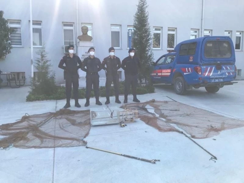 Ağ atarak saka kuşu avlarken jandarmaya yakalandılar