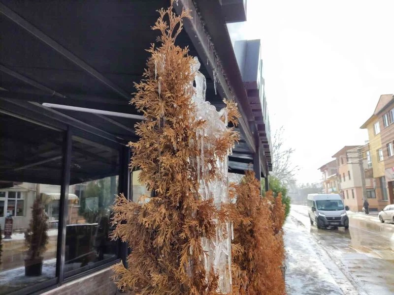 Ağaç dallarında oluşan buz sarkıtları dikkat çekiyor