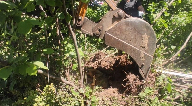 Kocaeli’nin Gölcük ilçesinde ormanlık alanda toprak çökmesi sonucu ağacın dibinde sıkışan köpek, belediye kepçesi ile kurtarıldı.