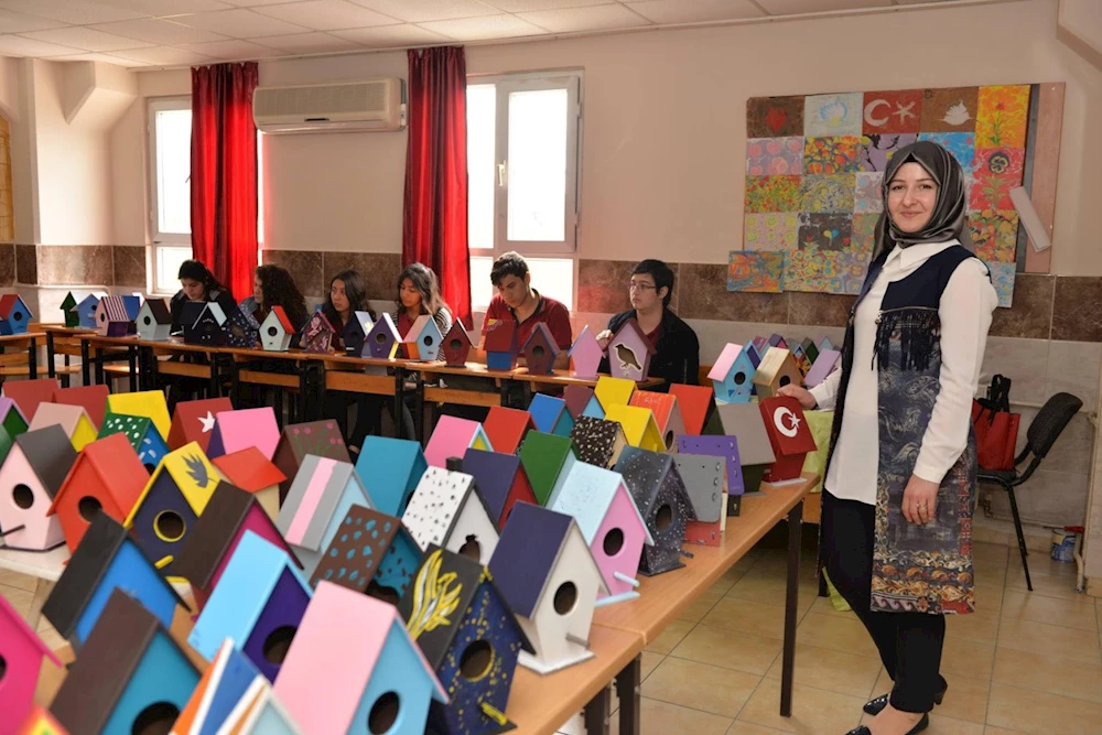 Osmaniye`de 80. Yıl Cumhuriyet Anadolu Lisesinde öğrencileri tarafından, "Yuvasız Kuş Kalmasın" sloganıyla, ağaçlara asılmak üzere tahtadan kuş evleri yapılıyor. Görsel Sanatlar Atölyesi bünyesinde oluşturulan Tasarım Beceri Atölyesinde öğrenciler tarafından "Kuş Evleri" üretiliyor. Okul Müdürü Kadir Dündar, "Gençlerimiz, kuşlar için vakıf kuran atalarının izinde, kurdukları tasarım ve beceri atölyesinde kuşlara yuva yapıyorlar." dedi. Dündar, "Merhamet ve sevginin örneği, Osmanlı`nın nezaket, zarafet ve iyilik temelleri üzerine kurduğu yaşam felsefesini mimari olarak anlattığı en güzel eserleri arasında yer alan ve günümüze kadar ulaşan Kuş Evlerinin yeniden hayat bulması ümidiyle başlatılan proje kapsamında öğrenciler, "Yuvasız Kuş Kalmasın" sloganıyla çalışmalarını devam ettirmektedirler. Yapılan kuş evlerin Osmaniye Belediyesine ait Park ve Bahçeler ile okul bahçelerimizdeki ağaçlara asılmasını hedeflemekteyiz." dedi. Görsel Sanatlar Öğretmeni Canan Polat ise öğrenciler tarafından doğada kullanılmak üzere hazırlanan kuş evlerinin, farklı renkleri ile farkındalık oluşturmak istediklerini, şu ana kadar ise 170 adet kuş yuvası yaptıklarını belirtti. Polat, bir ay içerisinde bu sayının 300`e ulaşmasını hedeflediklerini belirterek, ahşaptan yapılan yuvaların yine öğrenciler tarafından doğadaki ağaçlara asılacağını sözlerine ekledi.