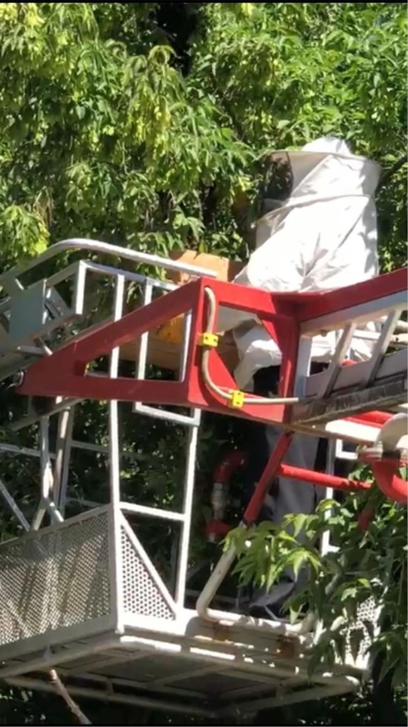 Fatih Mahallesi’nde bal arılarının cadde üzerinde bir ağaca oğul yapmaya başladığını gören mahalle sakinleri durumu itfaiye ekiplerine bildirdi. Olay yerine gelen itfaiye ekipleri, arılardan korunmak için özel kıyafet giyen görevliyi itfaiye merdiveniyle arıların bulunduğu ağaca çıkardı. Ağaçta yuvalanan arıların bulunduğu dala uzanarak arıları kovana koyan itfaiye eri, arıları sahibine teslim etti. İtfaiyenin bu çalışmasının ardından mahalle sakinleri rahat bir nefes aldı.