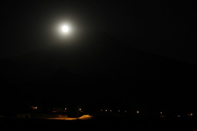 Iğdır’da muhteşem manzarası ile doğal bir tabloyu andıran Ağrı Dağı hemen yanında belirlenen ’Süper Ay’ ile kartpostallık görüntüler oluşturdu.