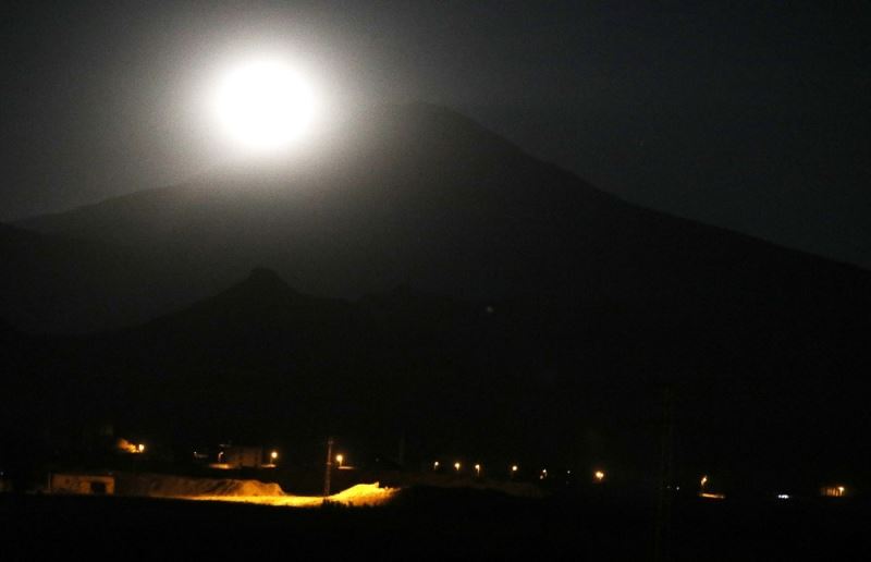 Ağrı Dağı ile birlikte görüntülenen ’Süper Ay’ kartpostallık görüntüler oluşturdu