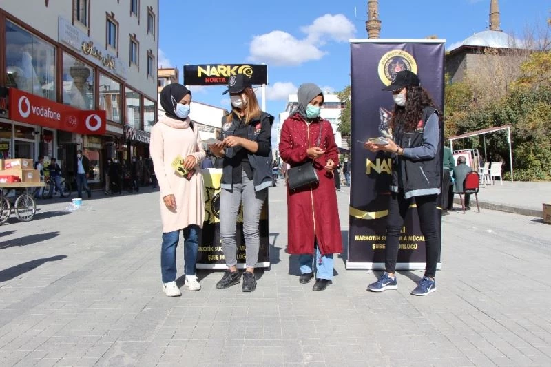 Uyuşturucuyla mücadelede annelere yönelik farkındalık ve bilinçlendirme çalışmasının yürütüldüğü proje kapsamında kent merkezinde, Ağrı İl Emniyet Müdürlüğü’ne bağlı Narkotik Suçlarla Mücadele Şube Müdürlüğü ekiplerince bilgilendirme faaliyetleri gerçekleştirildi.