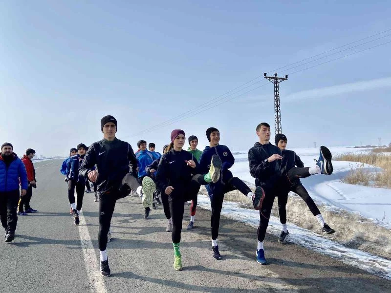 Ağrılı atletler, hedeflerine ulaşabilmek için dondurucu soğuklarda asfaltta ter dökerek yarışmalara hazırlanıyor.