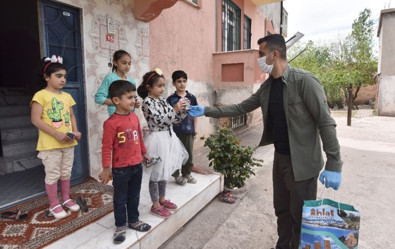 Bitlis’in Ahlat Kaymakamlığı Ramazan Bayramında şeker toplamaya çıkamayan çocuklara bayram şekeri ve çikolatası dağıttı.