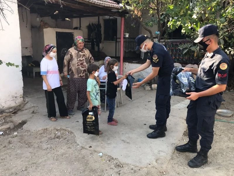 Ahmetli İlçe Jandarma Komutanlığı ekipleri, Kurban Bayramı dolayısıyla ihtiyaç sahibi aile ve mevsimlik işçilerin çocuklarına bayramlık kıyafet hediye etti.