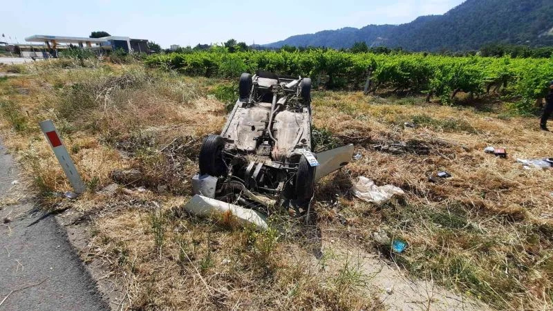 Manisa’nın Ahmetli ilçesinde sürücüsünün kontrolünden çıkarak takla atan otomobildeki 2 kişi yaralandı.