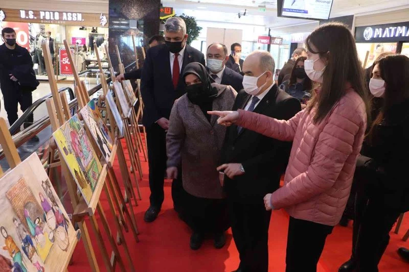 Samsun İl Müftülüğü tarafından lise öğrencileri arasında gerçekleştirilen "Ailede Merhamet" konulu resim yarışmasında derece girenlerin eserleri sergilendi.