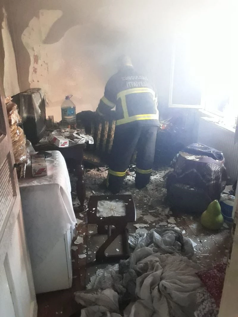 Zonguldak’ta bir kişi, ailesiyle birlikte yaşadığı evi yaktı.
