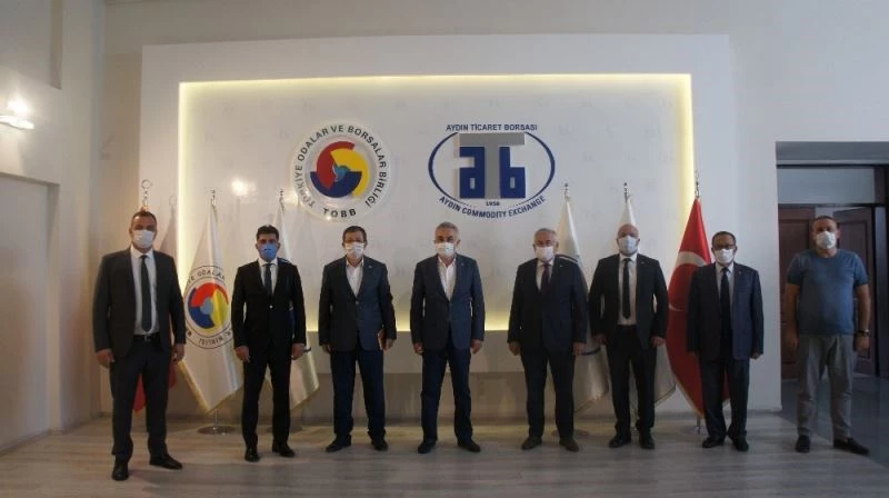 AK Parti Aydın Milletvekilleri Mustafa Savaş ve Bekir Kuvvet Erim’e Adnan Menderes Üniversitesi Rektörü Prof. Dr. Osman Selçuk Aldemir, Nazilli Ticaret Borsası Meclis Başkanı Yaşar Oğuz Baysal ve GEKA Aydın Sorumlusu Armağan Aydın’ın eşlik ettiği ziyarette; Aydın Ticaret Borsası Meclis Başkanı Ahmet Bahri Erdel, Yönetim Kurulu Başkanı Fevzi Çondur, Yönetim Kurulu Başkan Yardımcısı Cengiz Ülgen ve Genel Sekreter Neslihan Duymaz, heyeti karşıladı.