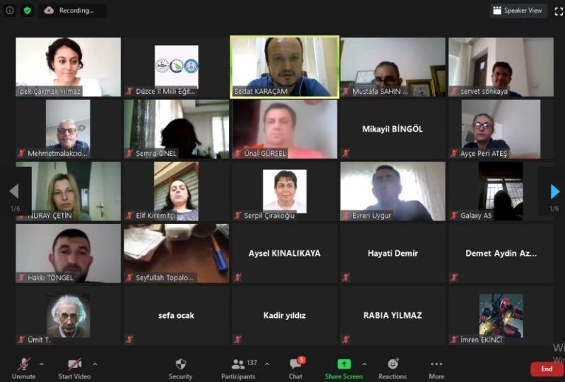 DÜZCE(İHA) – Düzce Valiliği İl Milli Eğitim Müdürlüğü düzce Üniversitesi işbirliği ile Türkiye’de ilk kez web seminerde ilk gün 9 alanda 9 akademisyen bin 750 öğretmen katılımı ile seminer verdi. Seminere Milli Eğitim Bakan Danışmanı Okan Çoban katıldı.