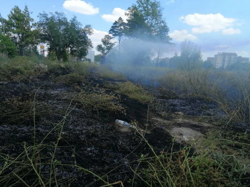 Akaryakıt istasyonunun yanındaki boş arazide çıkan anız yangınını itfaiye söndürdü