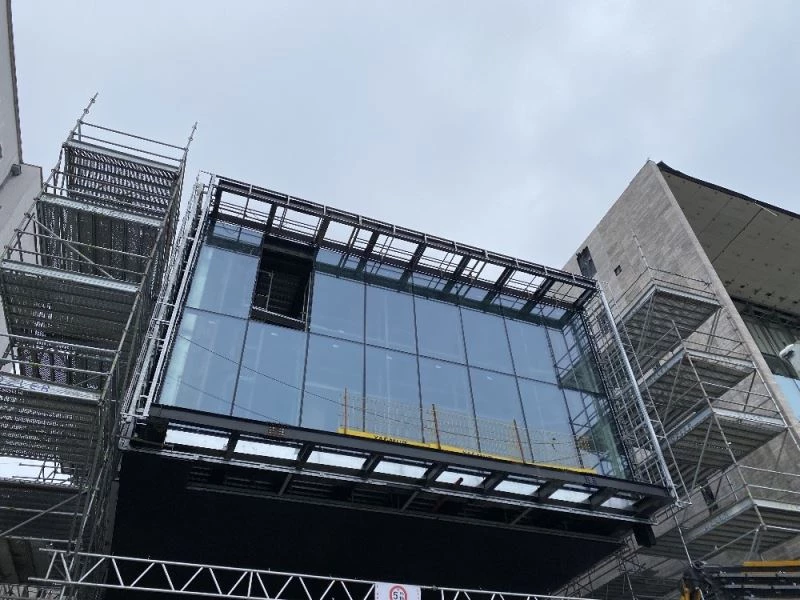 Yıkılan AKM’nin mimarı olan Hayati Tabanlıoğlu’nun oğlu mimar Murat Tabanlıoğlu imzasını taşıyan yeni Atatürk Kültür Merkezi’ndeki işçilerin hummalı çalışması devam ediyor. 5 bloktan oluşacak AKM binasında 2 bin 500 kişilik bir opera salonu, 800 kişilik tiyatro salonu, bin kişilik konferans salonu, 285 kişilik sinema salonu, 250 kişilik oda tiyatrosu, bir sergi salonu, bir kütüphane, 885 araçlık otopark yer alacak. Havadan görüntülenen binanın dış cephesinin ise cam bölme ile kaplandığı görüldü. Korona virüs önlemleri alınarak sürdürülen binanın dış cephesi büyük bir ekrana dönüştürülecek şekilde inşa ediliyor. Bu sayede Taksim Meydanı’ndaki vatandaşlar binanın dışına yansıtılan tiyatro, bale, opera gibi etkinliklerin temsillerini izleme imkanı yakalayabilecek.