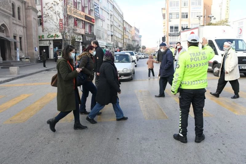 Aksaray’da yaya geçitlerinde görev alan trafik ekipleri, araç sürücülerine yönelik “yaya önceliği denetimi” yaptı.