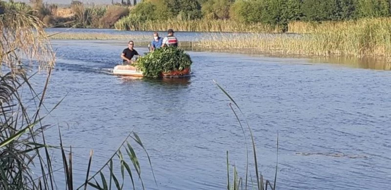 Antalya’da Aksu çayı içindeki bir toprak parçasında 585 kök hint keneviri yetiştiren 3 şüpheli yakalandı.